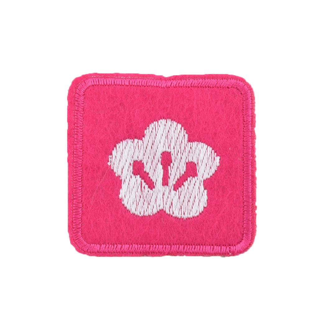 Термоаппликация Квадрат с цветком белым 45х45мм малиновый оптом