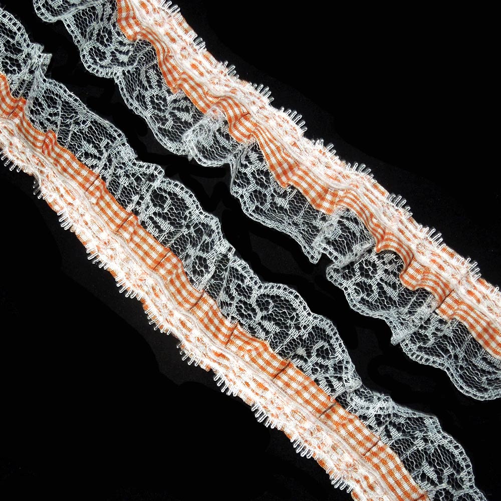 Описание Кружево рюш с лентой в клетку 50мм терракотовое с белым. Страна производитель: Китай.