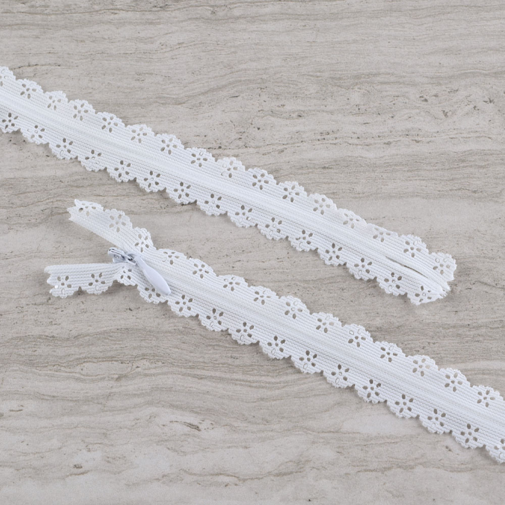 Молния потайная М-20 Тип-3 неразъемная х/б белая ажурная оптом