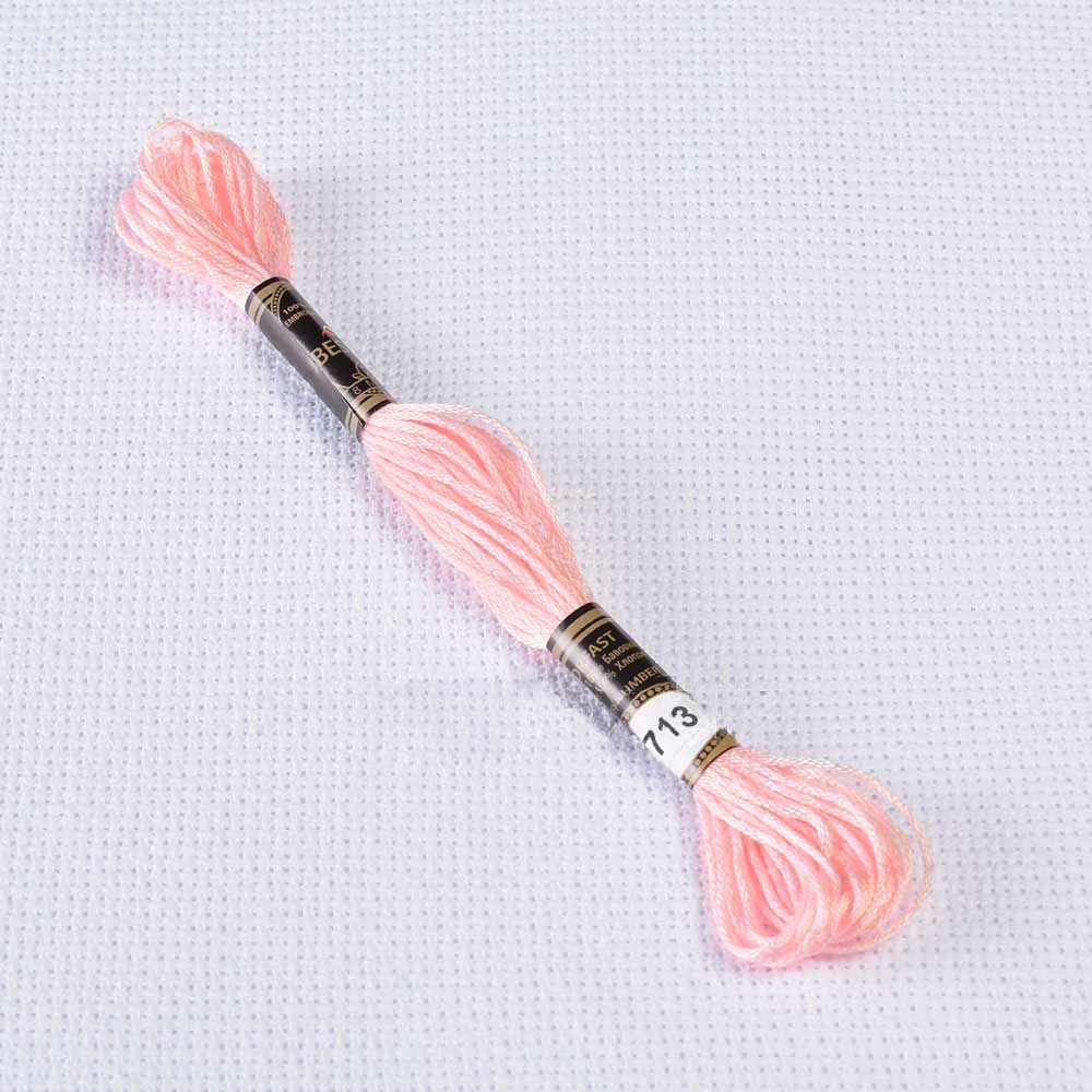 Описание Мулине Bestex 3713 8м, Лососевый, очень светлый. Страна производитель: Китай. Мулине Bestex высококачественные, декоративные, хлопковые нити для вышивания. Нити по 8 метров на 6 сложений. Мулине не линяет во время стирки, не выцветает от солнечных лучей, удобно в работе. Номера нитей соответствуют палитре французского мулине DMC, 100% хлопок.