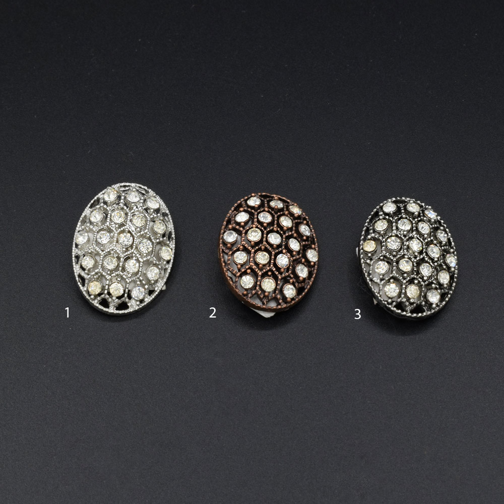 Пуговица на ножке металл овальная с камнем белым 2.8х2.1 оптом