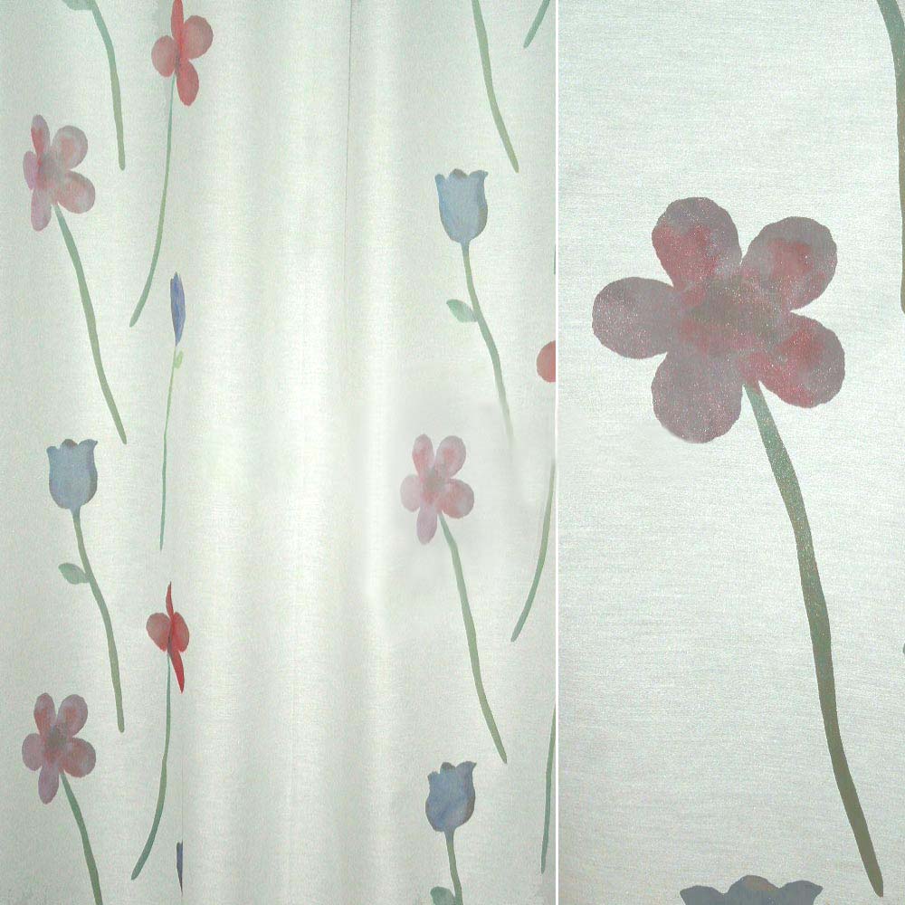 Описание Органза деворе тюль цветы высокие красные и синие, белая, ш.140. Состав ткани: Вискоза-65, Полиэстер-35. Плотность ткани: 56 г/м.кв. Страна производитель: Германия. Деворе — ткань с рисунком полученным путем выжигания (химической вытравкой) части волокон. Такой вид нанесения рисунка на ткань придает рисунку особую износостойкость, практичность и долговечность.
