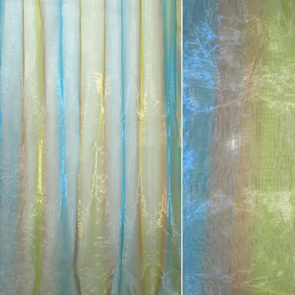 Описание Органза тюль радуга синяя, оранжевая, желтая ш.300. Состав ткани: Капрон-100. Плотность ткани: 32 г/м.кв. Страна производитель: Южная Корея. Полупрозрачная, воздухопроницаемая, легкая ткань с дизайнерским рисунком. Материал формообразующий, при драпировке укладывается в воздушные складки и принимает устойчивую форму.