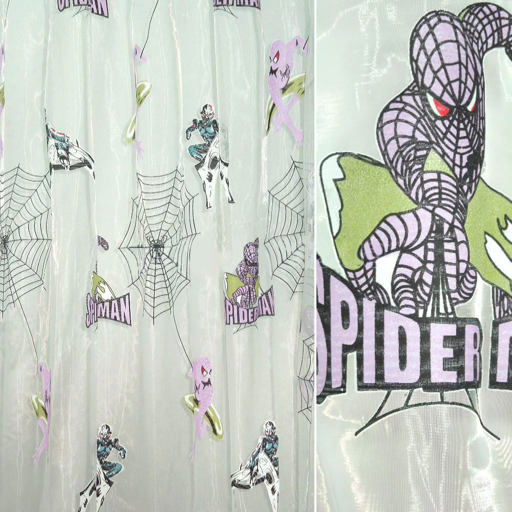 Описание Органза тюль принт детский человек-паук, белая, ш.275. Состав ткани: Полиэстер-100. Плотность ткани: 31 г/м.кв. Страна производитель: Южная Корея. Полупрозрачная, воздухопроницаемая, легкая ткань с дизайнерским рисунком. Материал формообразующий, при драпировке укладывается в воздушные складки и принимает устойчивую форму.
