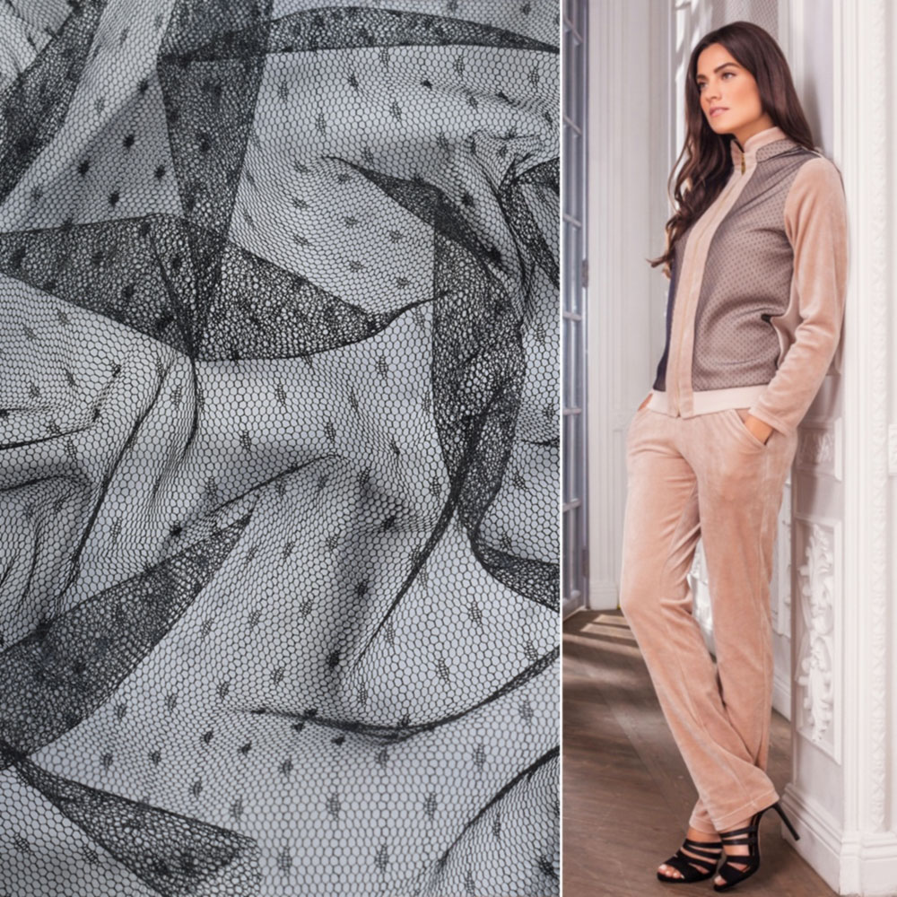 Описание Сетка мушка мелкая черная, ш.160. Состав ткани: Нейлон-40, Полиамид-60. Плотность ткани: 23 г/м.кв. Страна производитель: Южная Корея. Тонкий, мягкий, эластичный полупрозрачный материал. Сетка практичная, легкая, хорошо пропускает воздух, легкая в обработке. Используется для пошива легких летних платьев, вечерних нарядов, аксессуаров, платков.