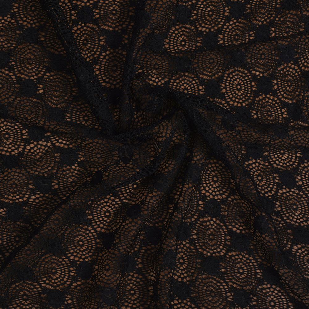 Кружевное полотно стрейч круги с цветами черное (уценка) ш.150 оптом