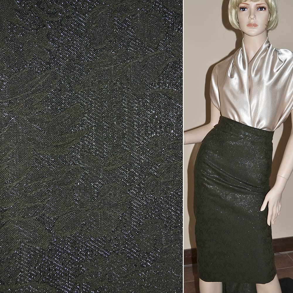 Описание Жаккард костюмный черный с тисненым рисунком и переливающимся люрексом, ш.150. Состав ткани: Нейлон-5, Триацетат-45, Хлопок-45, Шелк-5. Плотность ткани: 224 г/м.кв. Страна производитель: Южная Корея. Жаккардом называют ткани с крупным рельефным узором и сложным плетением. Плотный рисунок нитей в толще материи обеспечивает выдающуюся прочность жаккарда на разрыв: изделия без проблем переживают машинную стирку, химчистку, использование моющих средств. Отличается сравнительно легкой схемой ухода, способностью сопротивляться проникновению влаги. Применяется при изготовлении декоративных предметов из текстиля и для изготовления одежды.