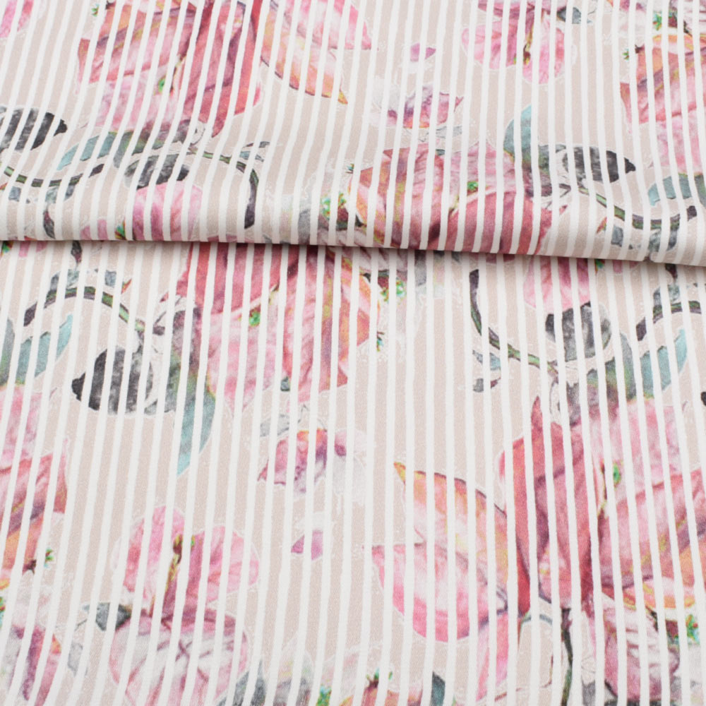 Коттон стрейч APANAGE бежевый, розовые цветы, белая полоска, ш.128 оптом
