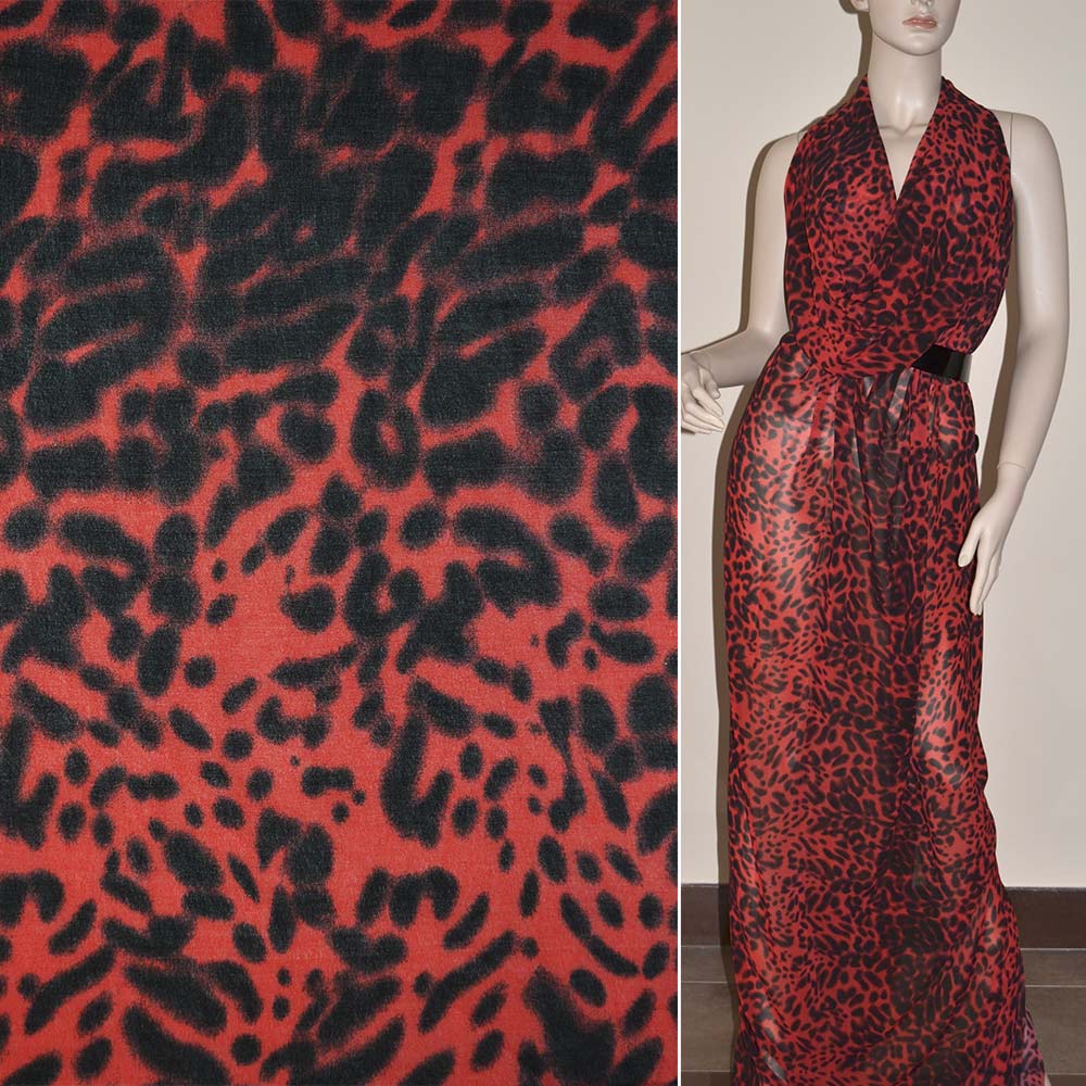 Крепдешин красно-черный принт леопард ш.150 оптом
