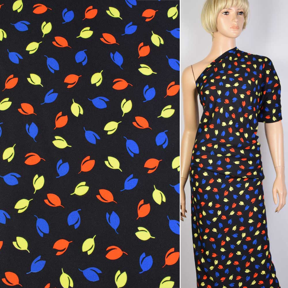 Креп черный в красные, желтые, синие цветы ш.150 оптом