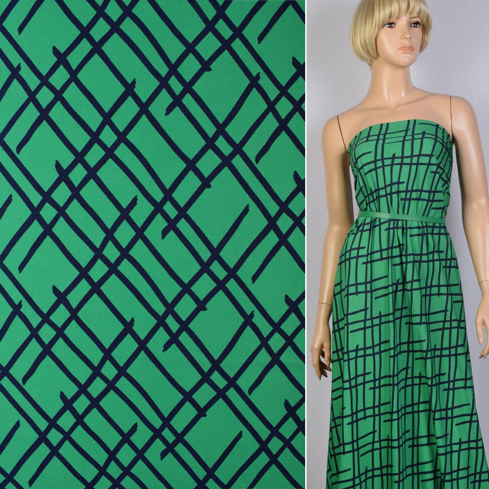 Поплин зеленый (изумрудный) в синие линии ш.150 оптом