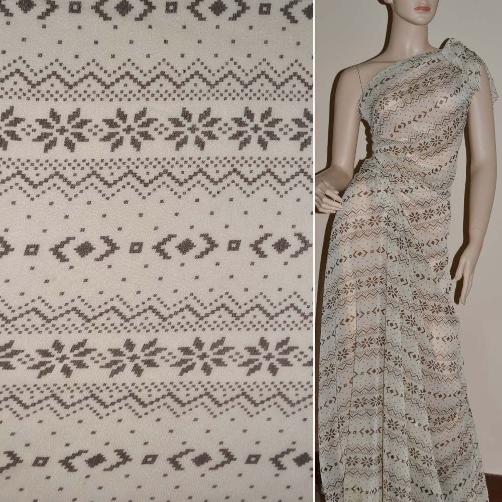 Шифон кремовый с коричневым орнаментом ш.140 оптом