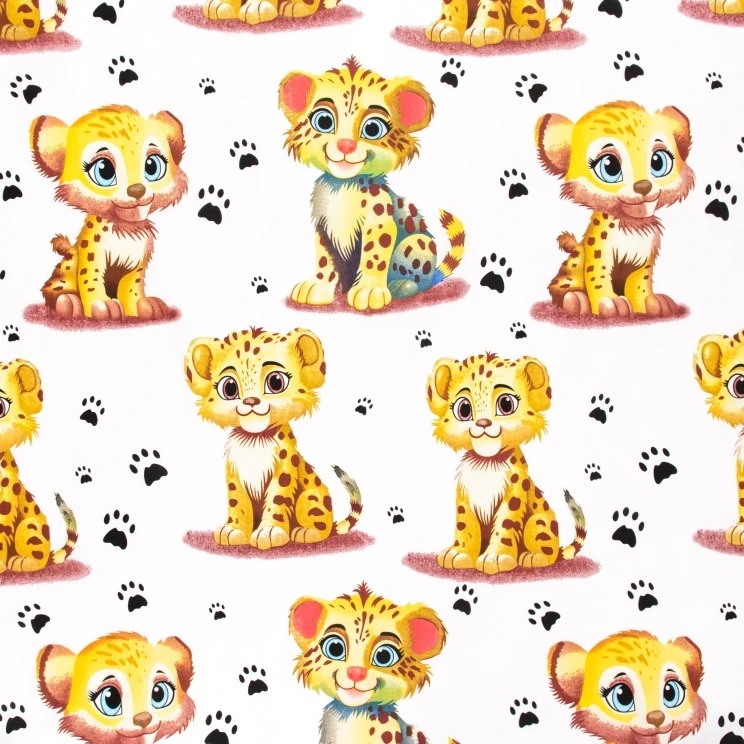 Описание Бязь набивная белая, тигрята ш.220. Состав ткани: Хлопок-52, Полиэстер-48. Плотность ткани: 118 г/м.кв. Страна производитель: Украина. Бязь - легкая, гигроскопичная, прочная, шлифованная ткань. Высокая степень обработки нити делает материал гладким и приятным на ощупь, очень прочным и износостойким, устойчивым к деформации и выгоранию. Выдерживает большое количество стирок, сохраняя свой внешний вид и характеристики.