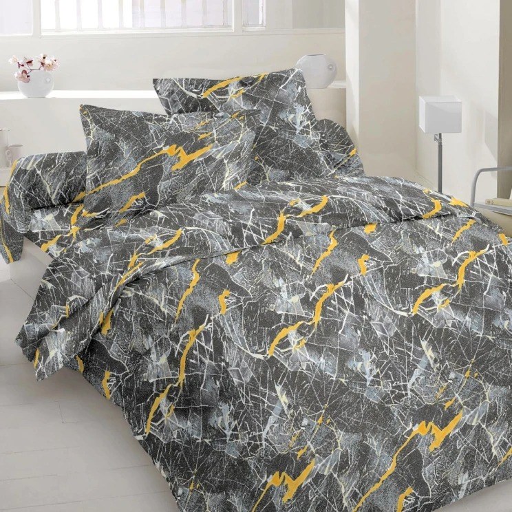 Бязь набивная серая, серый желтый абстрактный рисунок ш.220 оптом