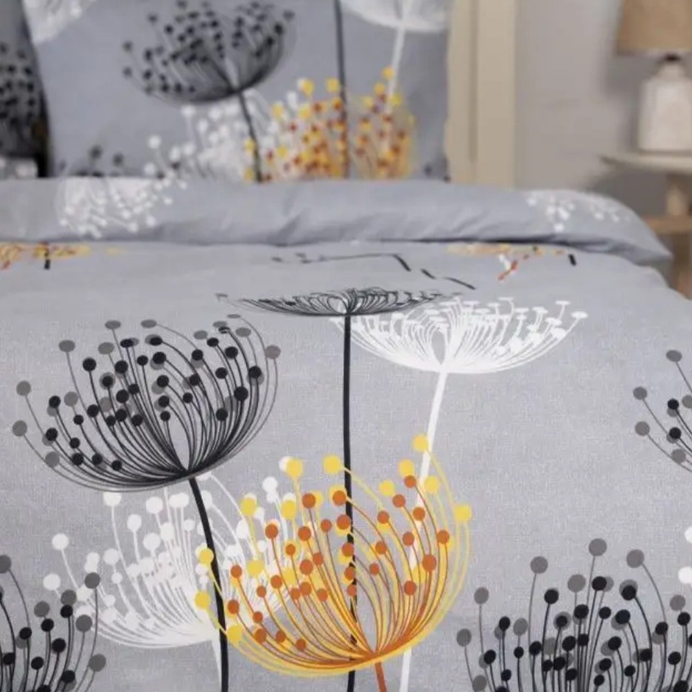 Бязь набивная серая, цветные одуванчики, ш.220 оптом