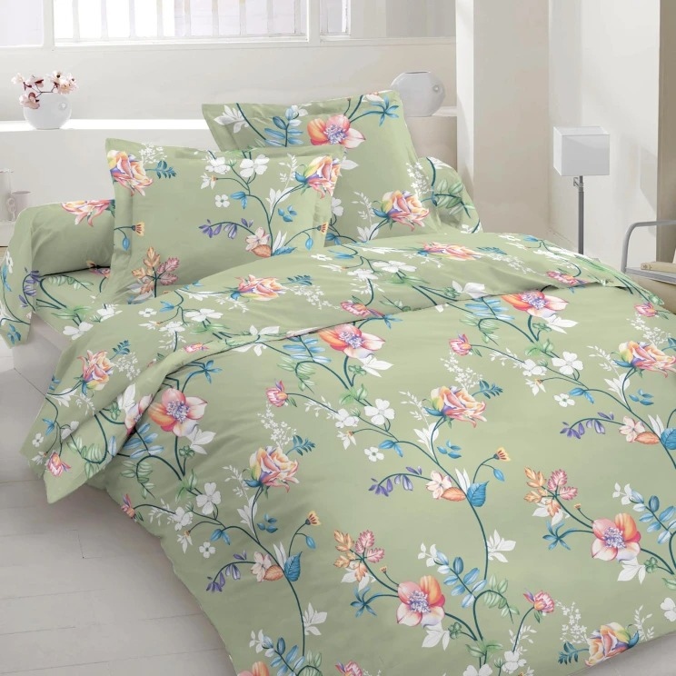 Бязь набивная серо-зеленая, оранжево-розовые цветы, ш.220 оптом