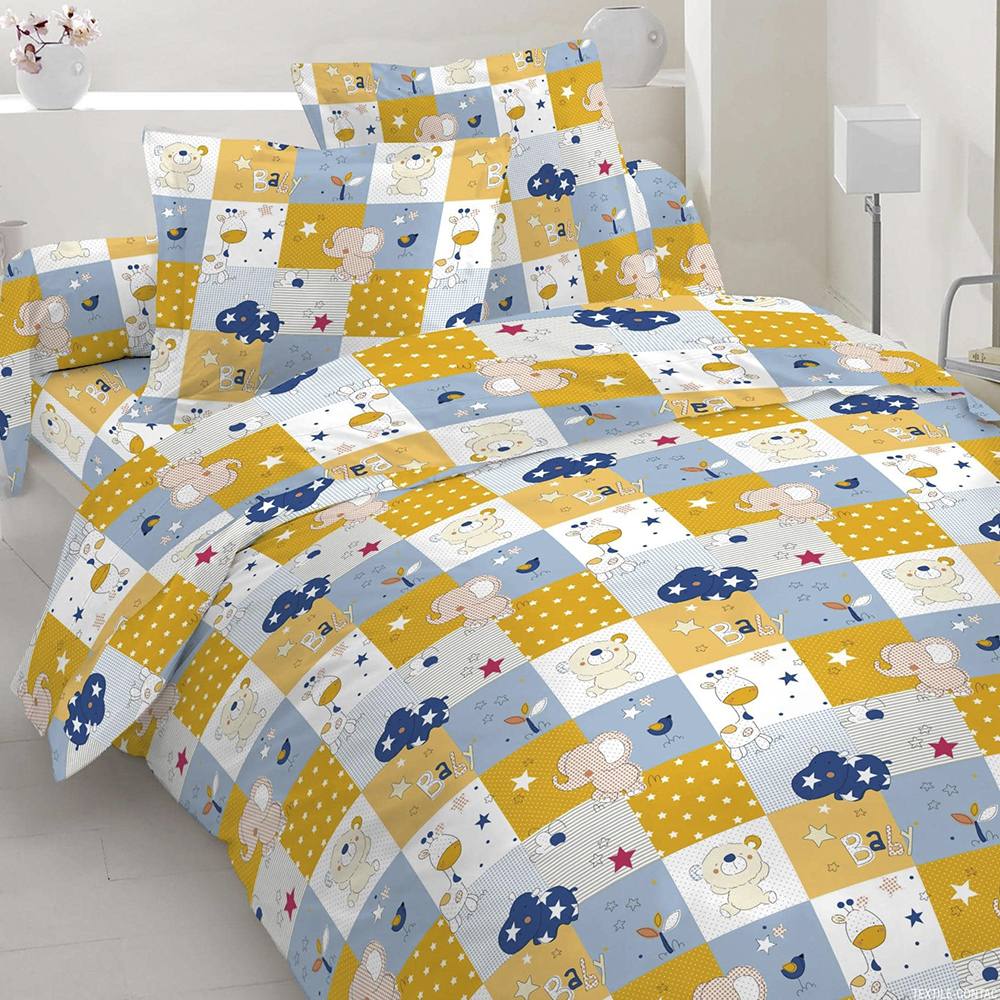 Бязь набивная желто-голубые квадраты BABY игрушки, ш.220 оптом