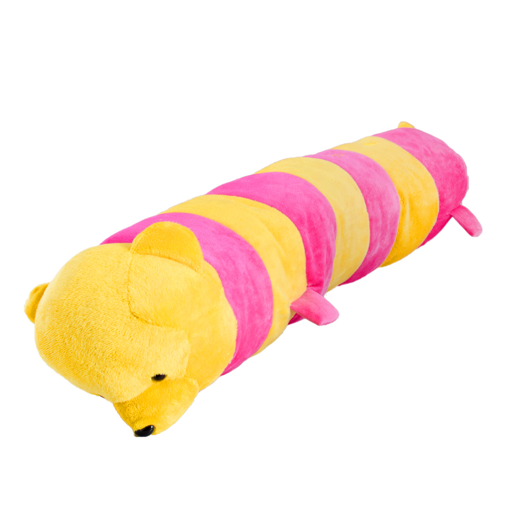 Мягкая подушка валик игрушка мишка 67 см высота 13 см желтый с малиновым оптом