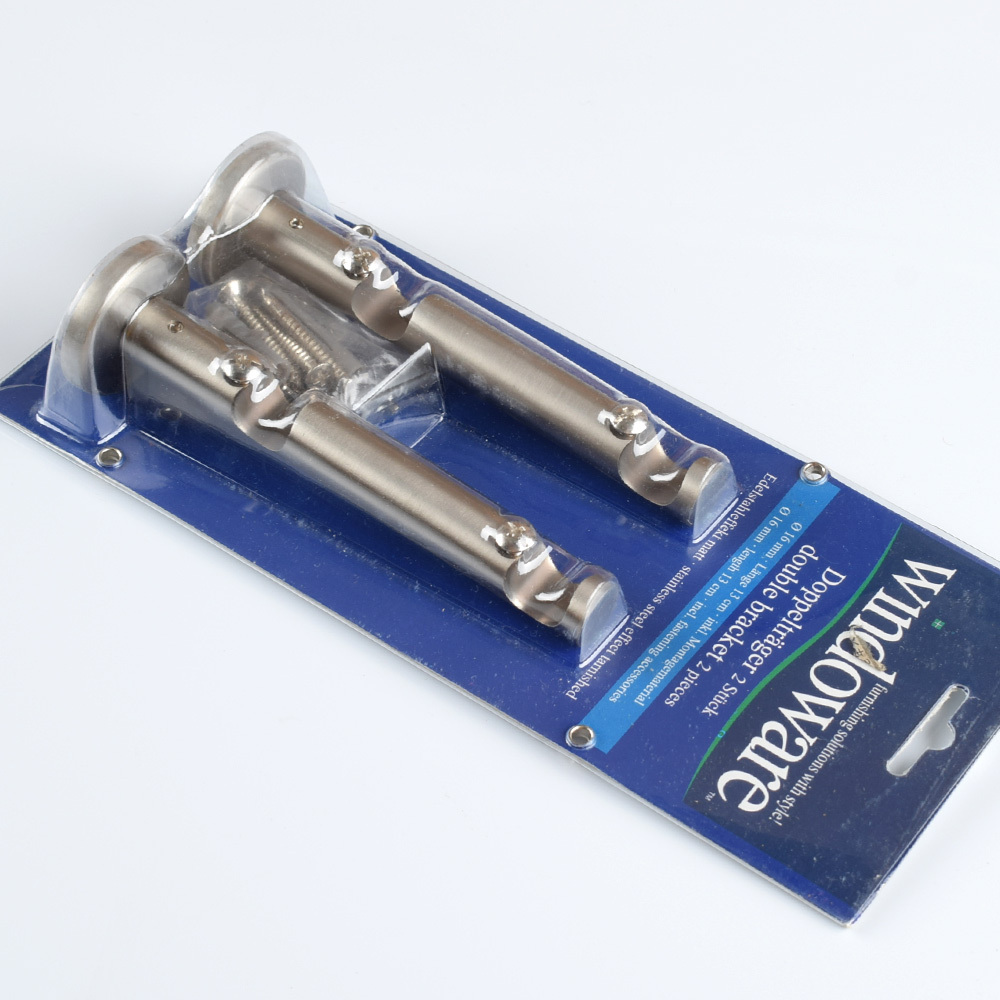 Описание Кронштейны для карниза металлического 16 мм двойной стальной. Страна производитель: Китай. Длина кронштейна 135мм. Цвет стальной матовый.