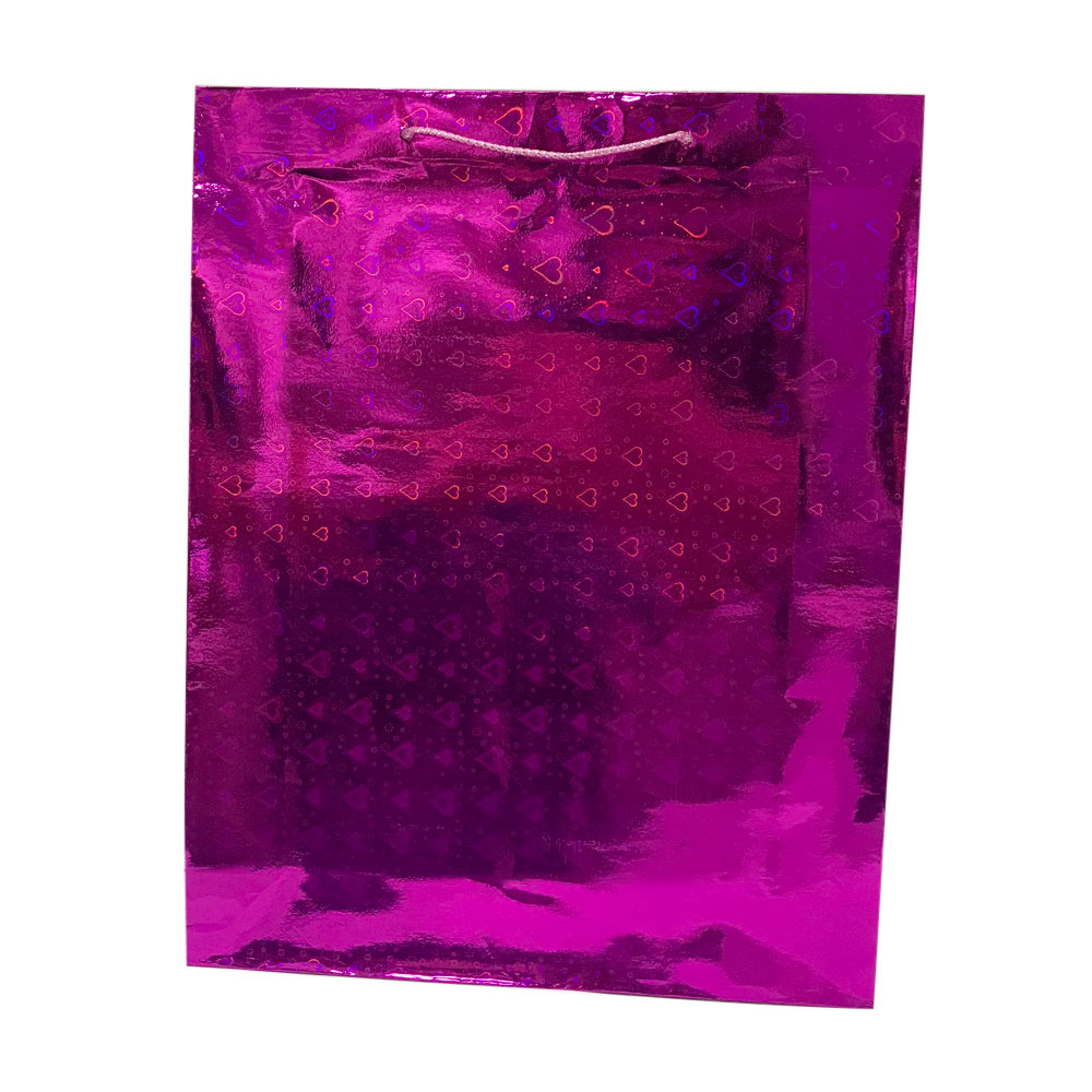 Пакет подарочный голограмма 29х37 см сердечки малиновый оптом