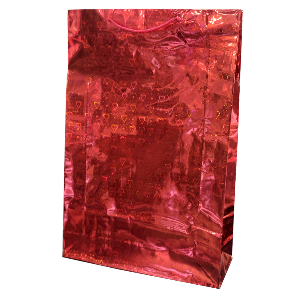 Пакет подарочный голограмма 32х45 см сердечки красный оптом