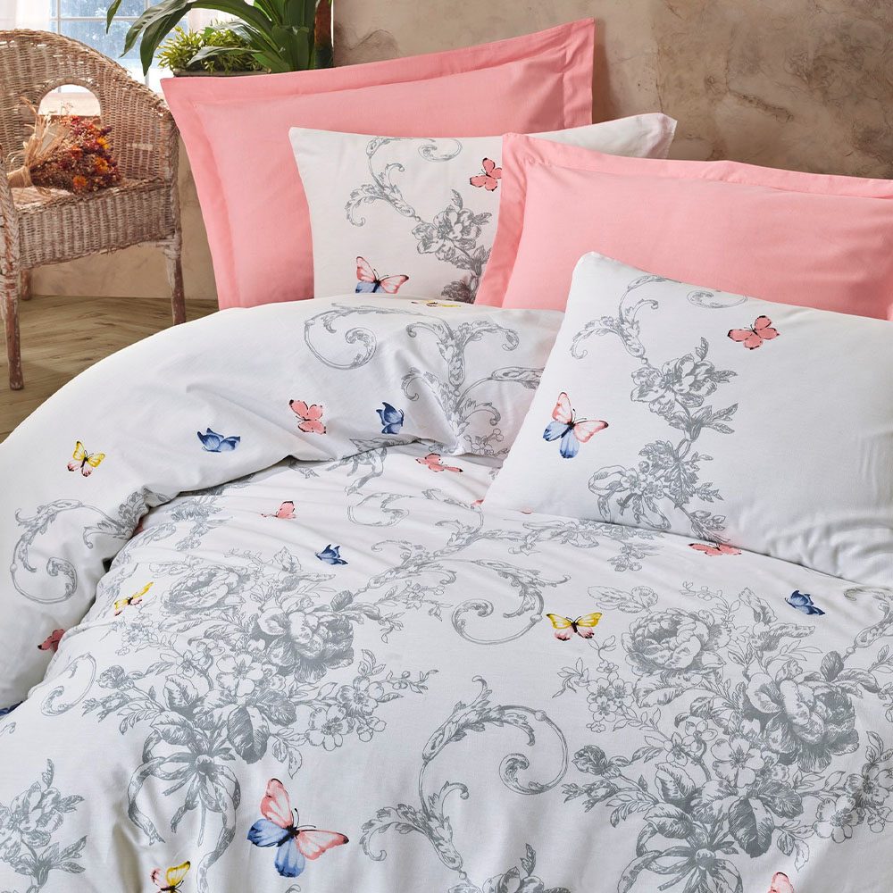 Комплект постельного белья Cotton box Ранфорс Modeline Cathi розовый белый Евро 200x220см (1761-965) оптом