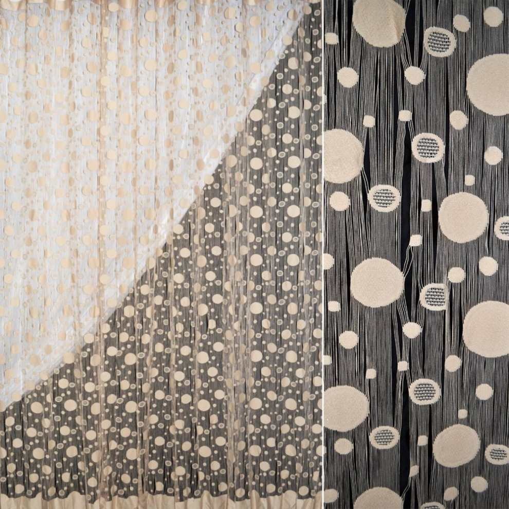 Штора ниточная ажурная с провисами и кругами 300 см персиковая оптом