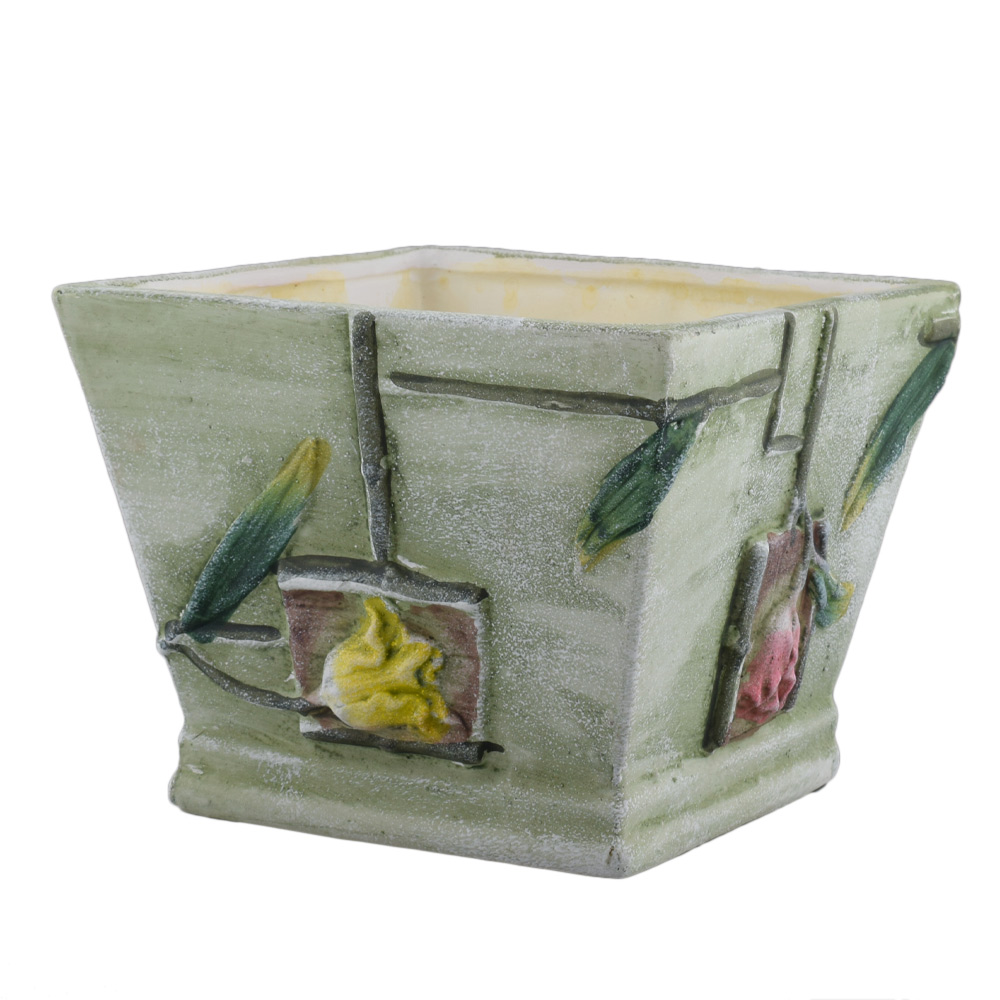Кашпо керамика с тюльпанами квадрат 15,5х20x20см вн. 15х16,5х16,5см светло-зеленое оптом
