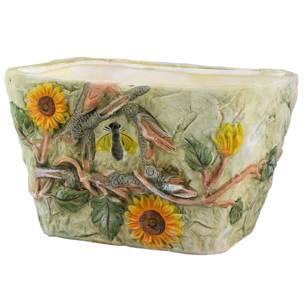 Кашпо керамика с ульем и подсолнухом 15,5х24х18,5см вн. 18х22х16см салатовое оптом