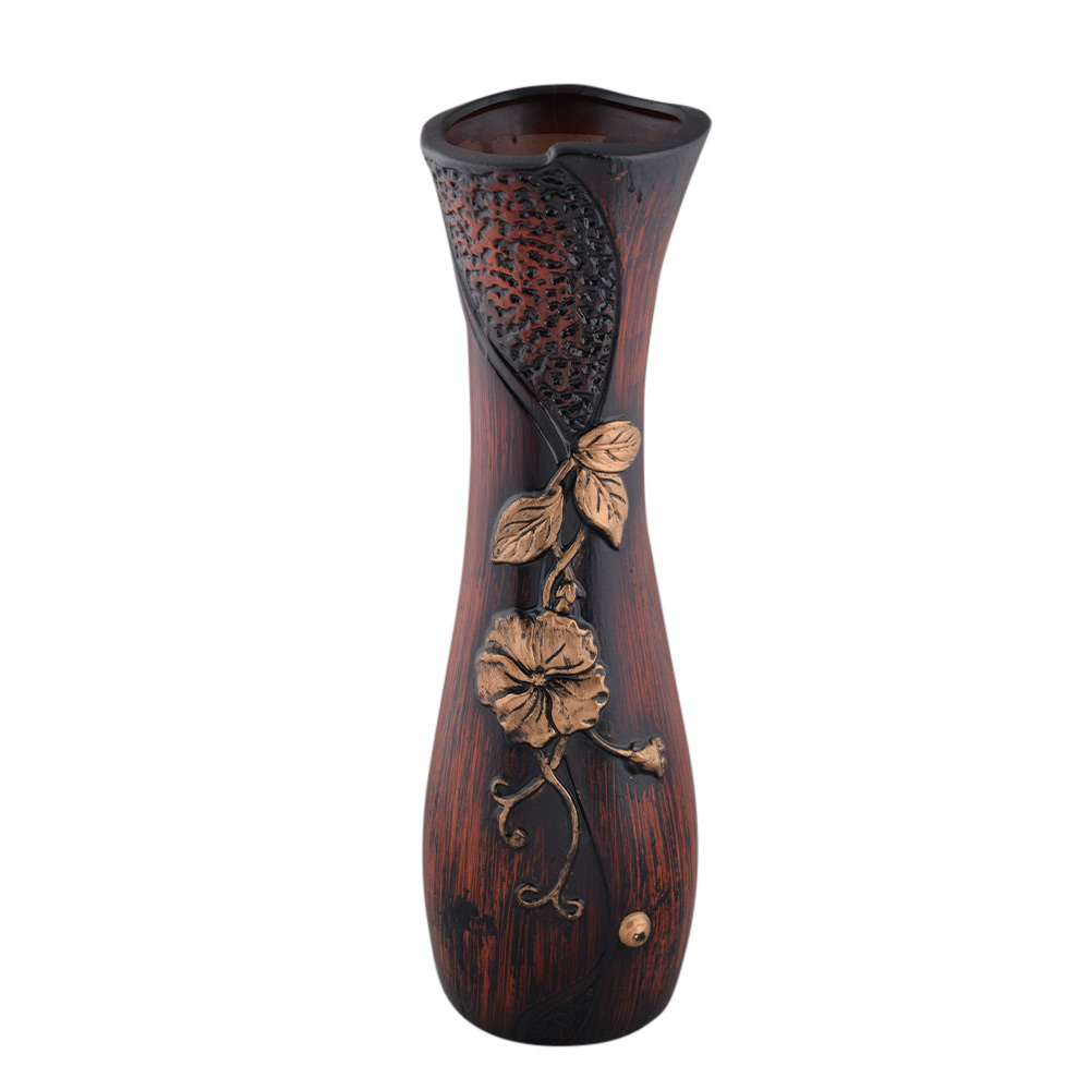 Ваза напольная керамика под дерево с пуговицей и веточкой 44 см коричнево-черная оптом