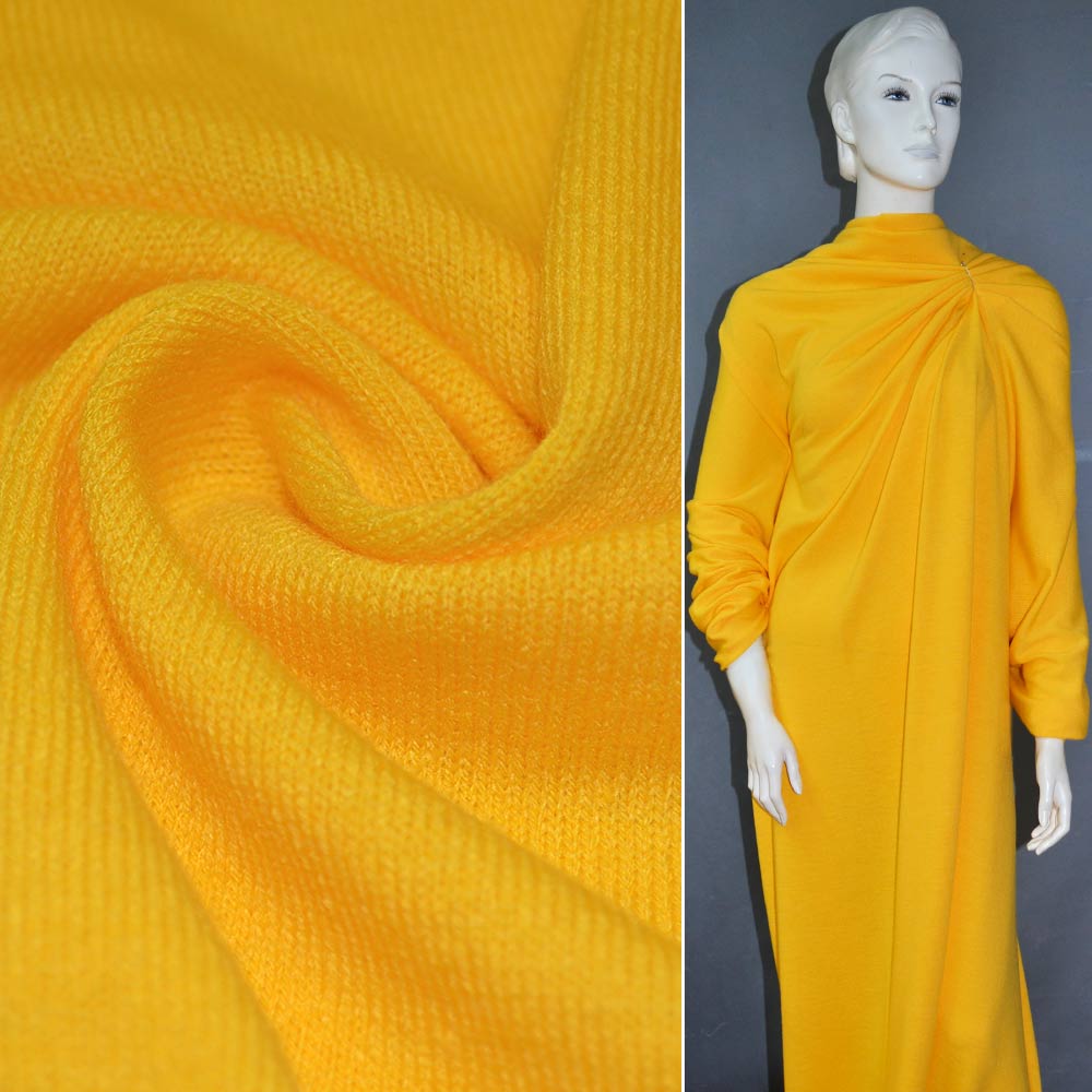 Описание Трикотаж шерстяной желтый ш.180. Состав ткани: Полиакрил-50, Шерсть-45, Эластан-5. Плотность ткани: 238 г/м.кв. Страна производитель: Южная Корея. Трикотаж - это мягкая плотная материя, не прозрачная. Приятная на ощупь, комфортная в носке. Благодаря содержанию синтетических материй, материал более износостойкий и надолго сохраняет свой первоначальный вид. Наличие шерсти делает материал более теплым. Ткань отличается своей приятной текстурой, хорошей растяжимостью, практически не мнется. Трикотаж достаточно простой в уходе. Используется для пошива платьев, спортивных костюмов, легких жакетов, поло, футболок и многого другого.