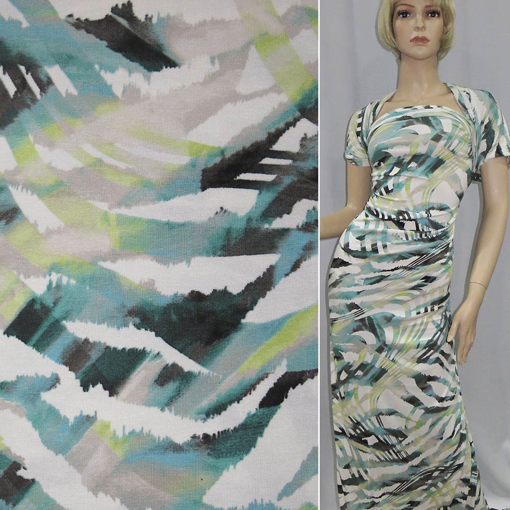 Трикотаж вискозный стрейч белый с бирюзово-серой абстракцией (принт) ш.150 оптом