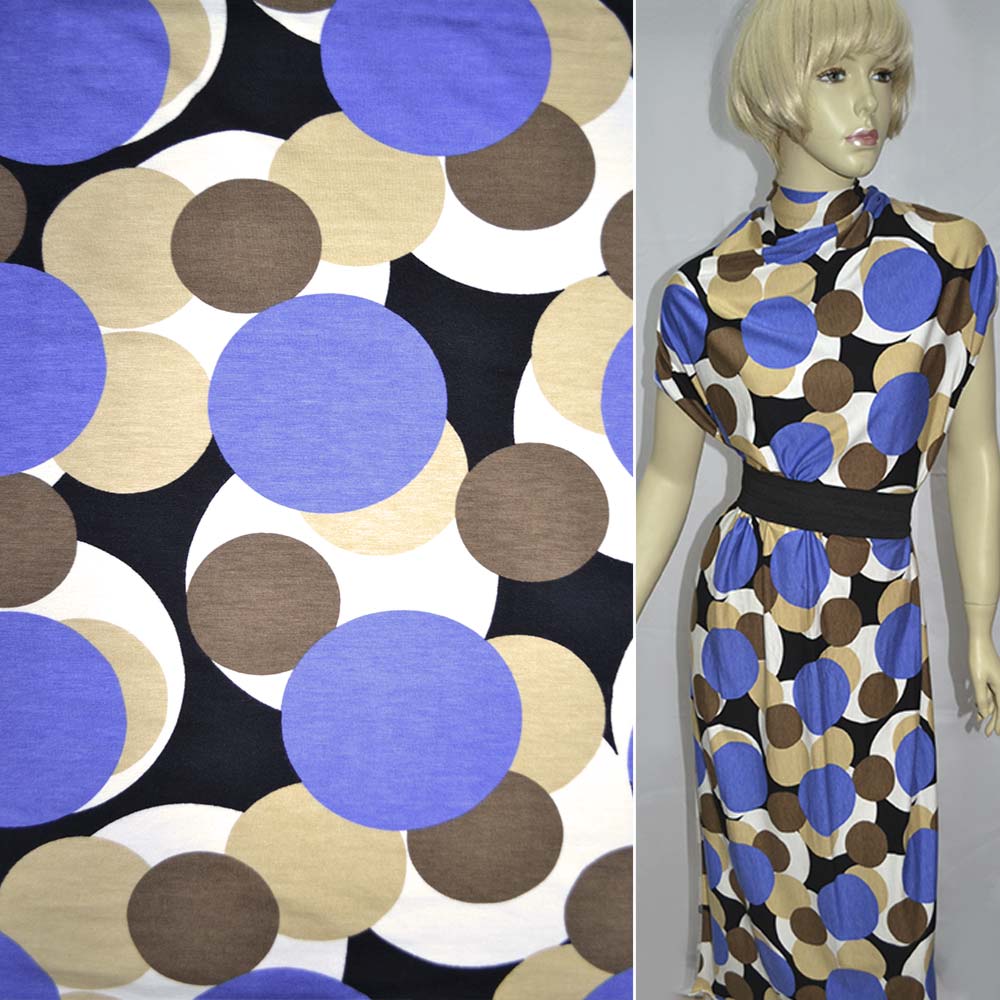 Описание Трикотаж вискозный стрейч белый с фиолетовыми, бежевыми, коричневыми кругами ш.160. Состав ткани: Вискоза-96, Эластан-4. Плотность ткани: 189 г/м.кв. Страна производитель: Германия. Трикотаж - это мягкая плотная материя, не прозрачная. Приятная на ощупь, комфортная в носке. Благодаря содержанию синтетических материй, материал более износостойкий и надолго сохраняет свой первоначальный вид. Ткань отличается своей приятной текстурой, хорошей растяжимостью, практически не мнется. Трикотаж достаточно простой в уходе. Используется для пошива платьев, спортивных костюмов, легких жакетов, поло, футболок и многого другого.