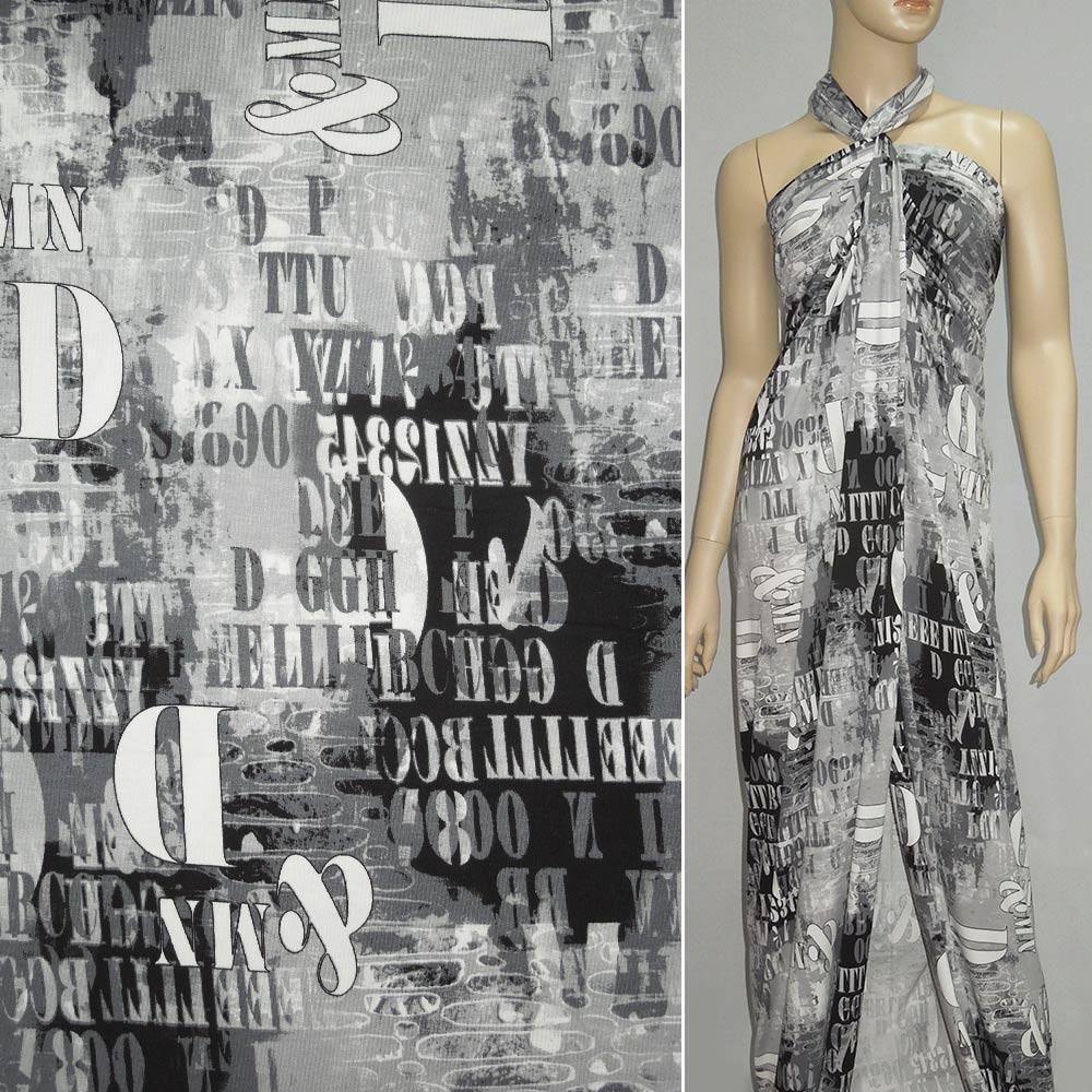 Трикотаж вискозный стрейч серый буквы ш.150 оптом