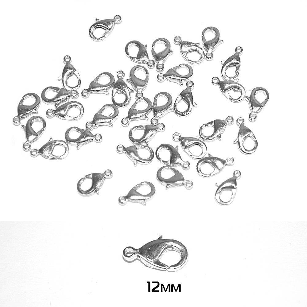 Замок карабін крапля 12мм сріблястий світлий оптом
