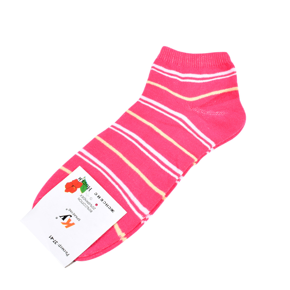 Шкарпетки рожеві яскраві в біло-жовту смужку (1пара) оптом