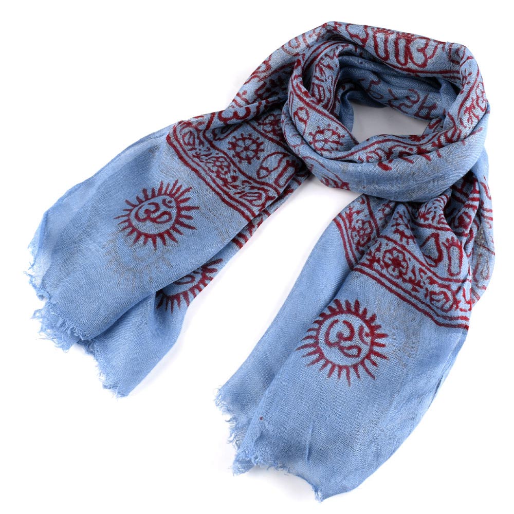 Шарф марлевий з етнічним принтом 135х60 см блакитний оптом