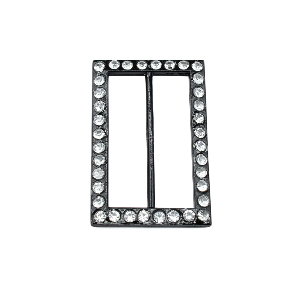 Пряжка нероз'ємна зі стразами метал 50мм прямокутна 60х40мм чорна оптом