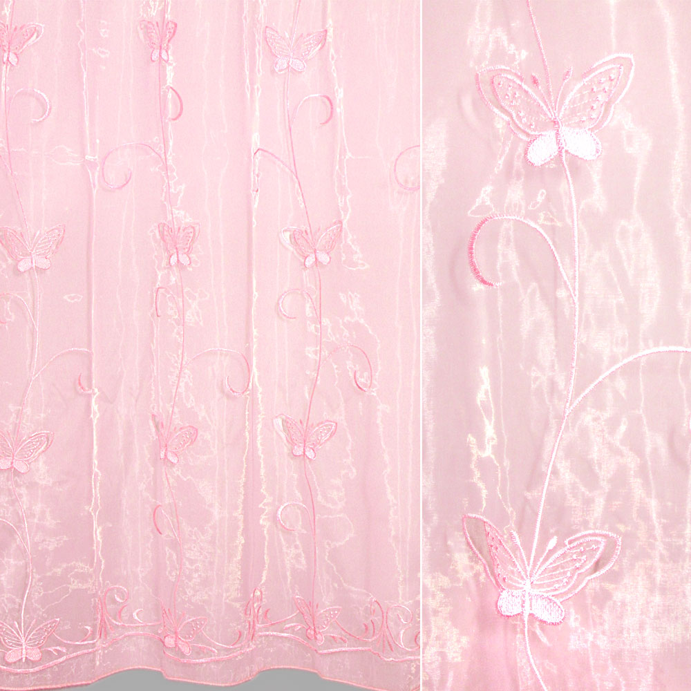Органза тюль з вишивкою, вирізаними метеликами, рожева, ш.280 оптом