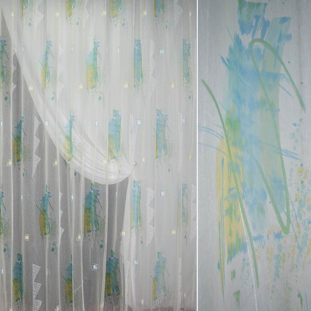 Опис Напіворганза тюль абстракція жовто-синьо-зелена, молочна, ш.290. Склад тканини: Капрон-70, Нейлон-30. Щільність тканини 38 г/м.кв. Країна виробник: Німеччина. Дякуємо за ваш вибір.