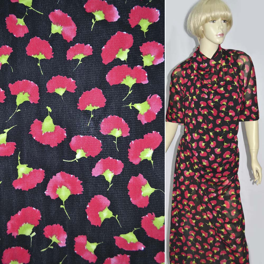 Опис Сітка стрейч чорна в гвоздики. Склад тканини: Поліамід-90, Еластан-10. Щільність тканини 60 г/м.кв. Країна виробник: Німеччина. Тонкий, м'який, еластичний матеріал у дрібну сітку. З нанесеним на неї кольоровим малюнком. Сітка практична, легка, добре пропускає повітря, легка в обробці. Використовується для пошиття легких літніх суконь, вечірнього вбрання, аксесуарів, хусток.Дякуємо за ваш вибір.