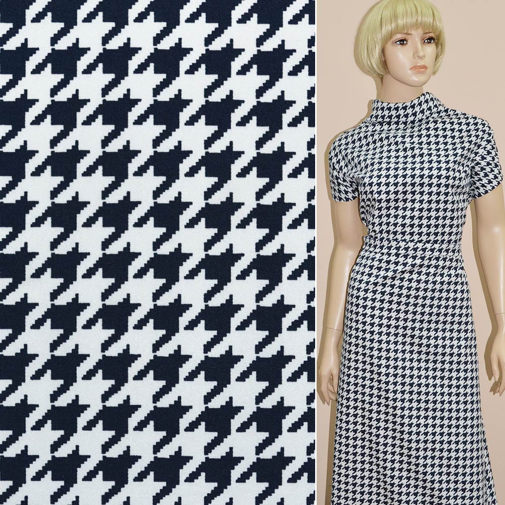 Котон стрейч білий в темно-синю гусячу лапку ш.148 оптом