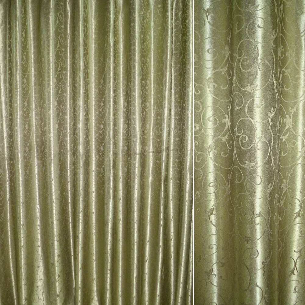 Опис Атлас жакард для штор завитки оливковий темний, ш.280. Склад тканини: Поліестер-100. Щільність тканини 173 г/м.кв. Країна виробник: Південна Корея. Дякуємо за ваш вибір.