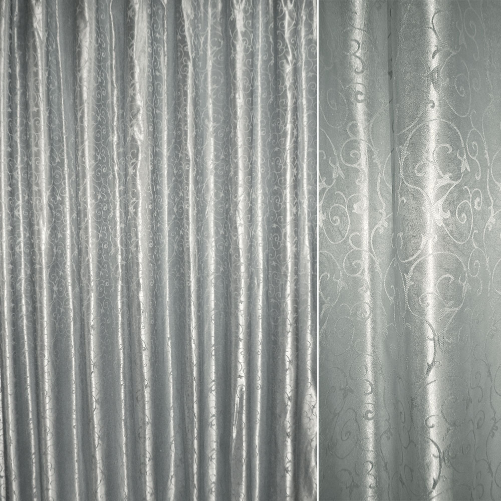 Опис Атлас жакард для штор завитки сріблястий, ш.280. Склад тканини: Поліестер-100. Щільність тканини 173 г/м.кв. Країна виробник: Південна Корея. Дякуємо за ваш вибір.