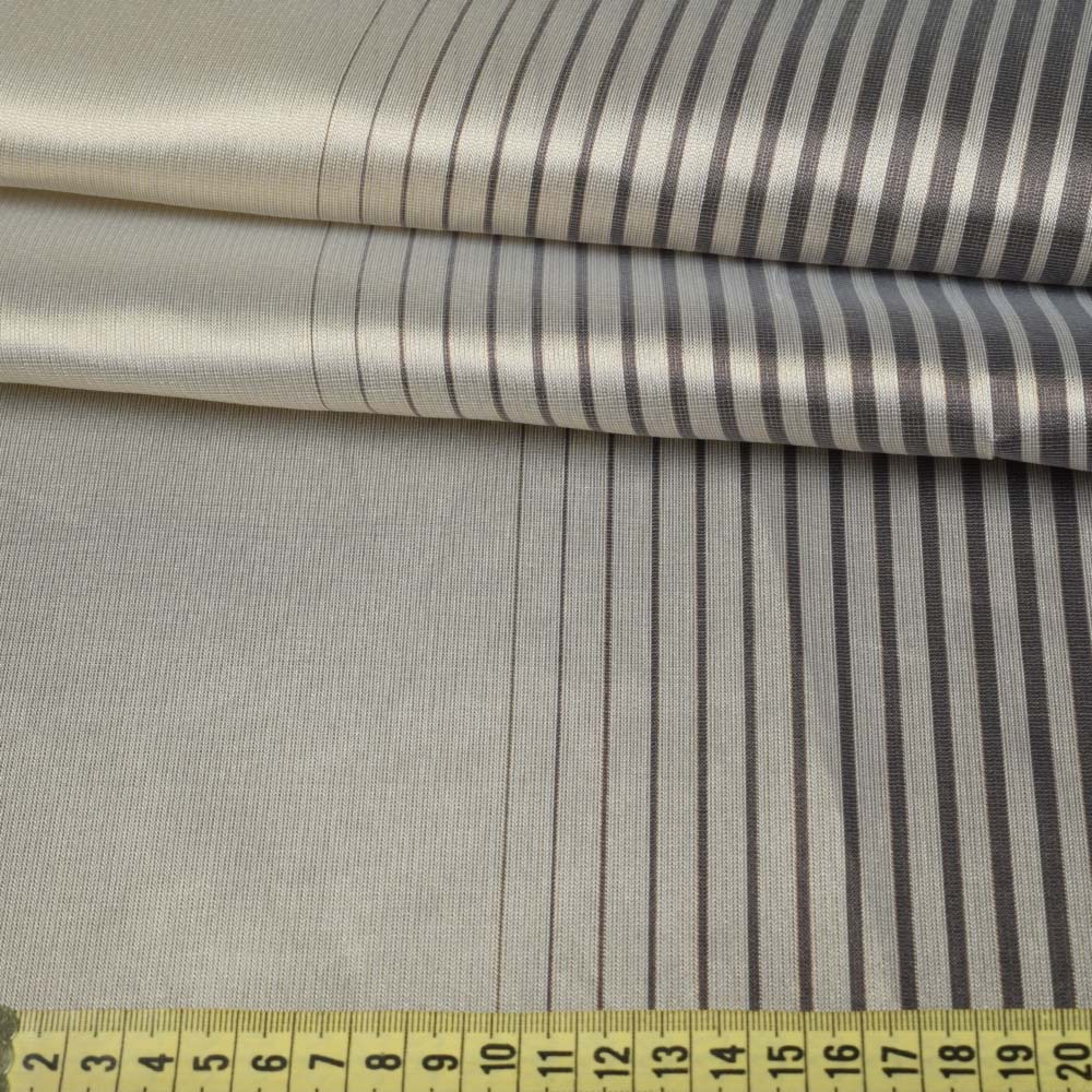 Шовк штучний для штор смужки вузькі сірі на сріблясто-бежевому тлі, ш.300 оптом