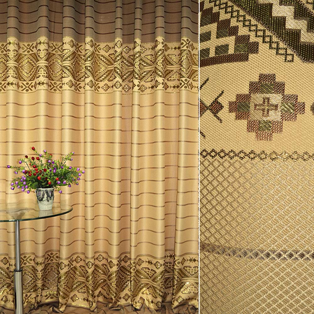 Жакард з метаниткою для штор орнамент купон коричнево-персиковий, ш.270 оптом