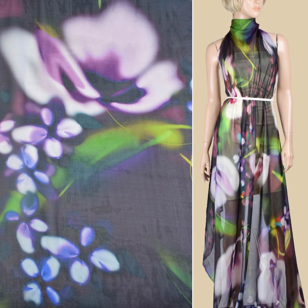 Шовк зелений темний з фіолетовими, лимонними плямами ш.140 оптом