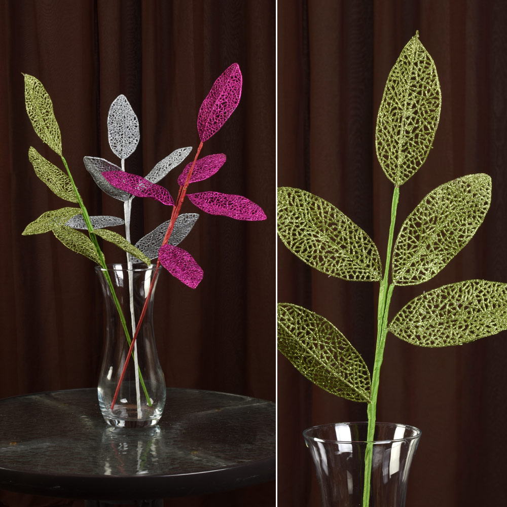 Штучна гілочка з ажурними блискучими листям зелена оптом
