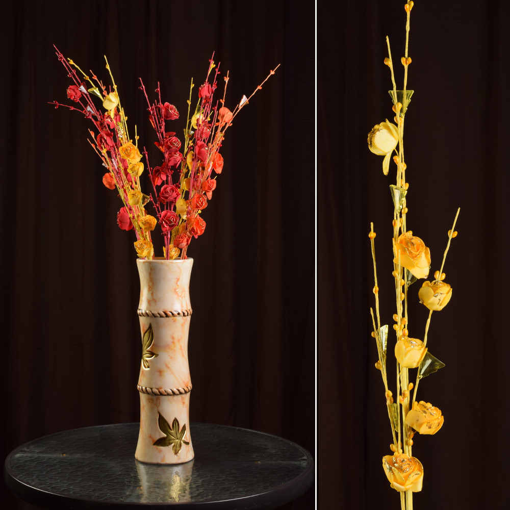 Штучна гілочка 80 см з трояндочками і скляними листами жовта оптом