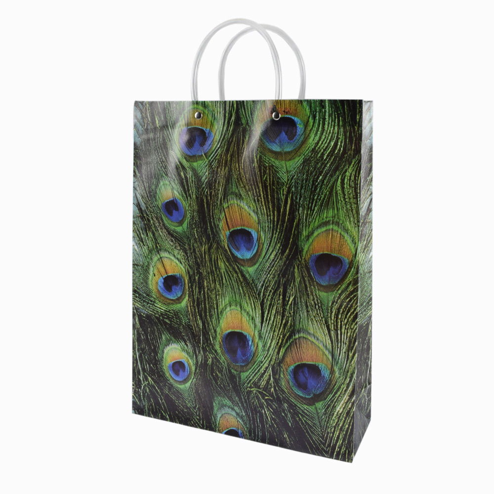Пакет подарунковий трубчаста ручка 29х40 см текстура пір'я павича оптом